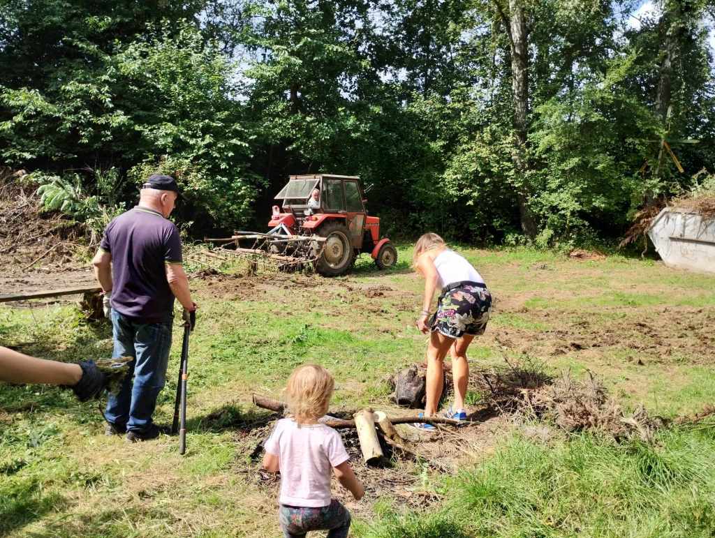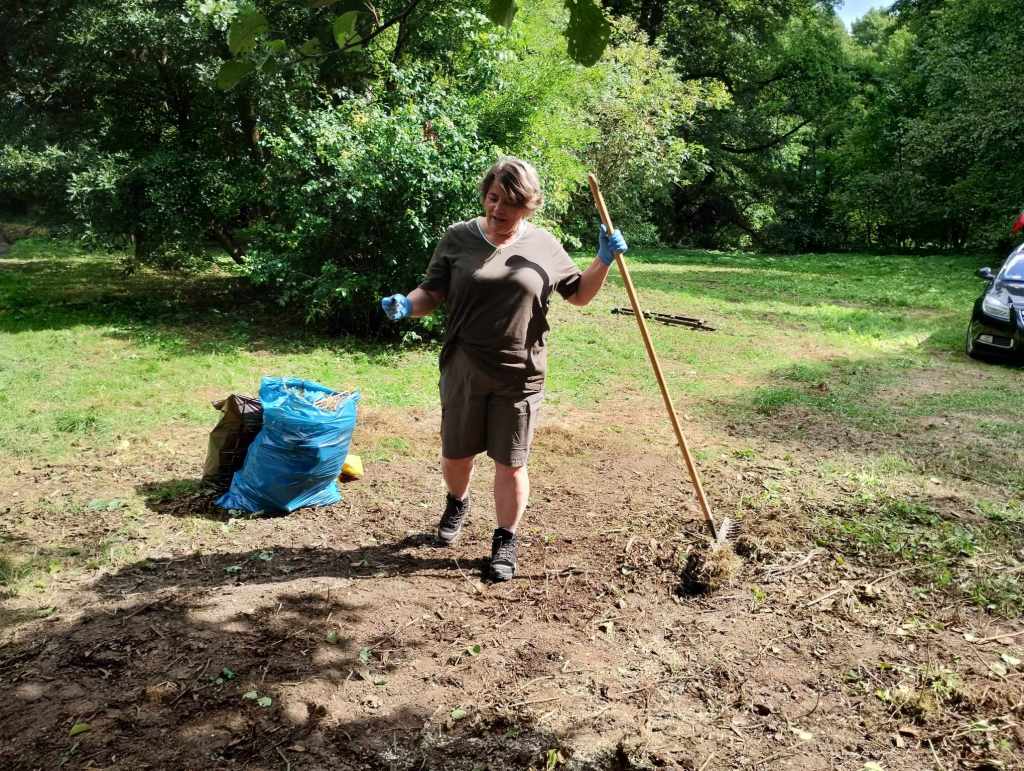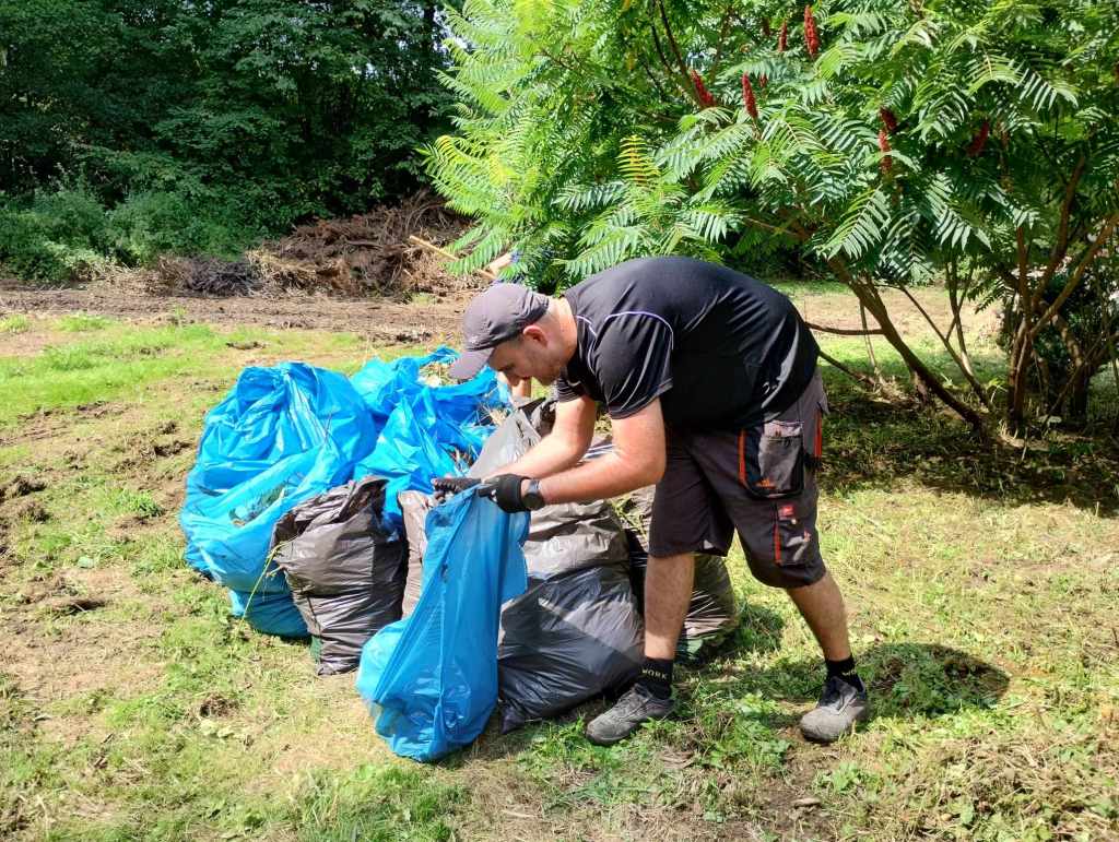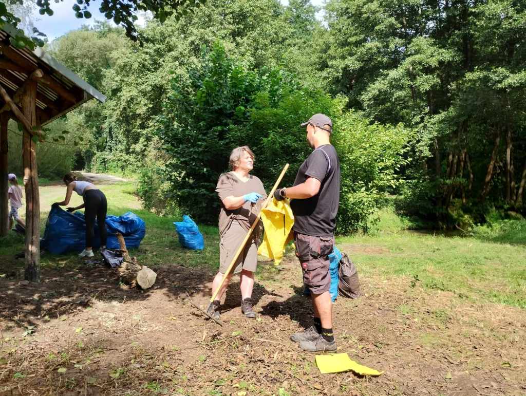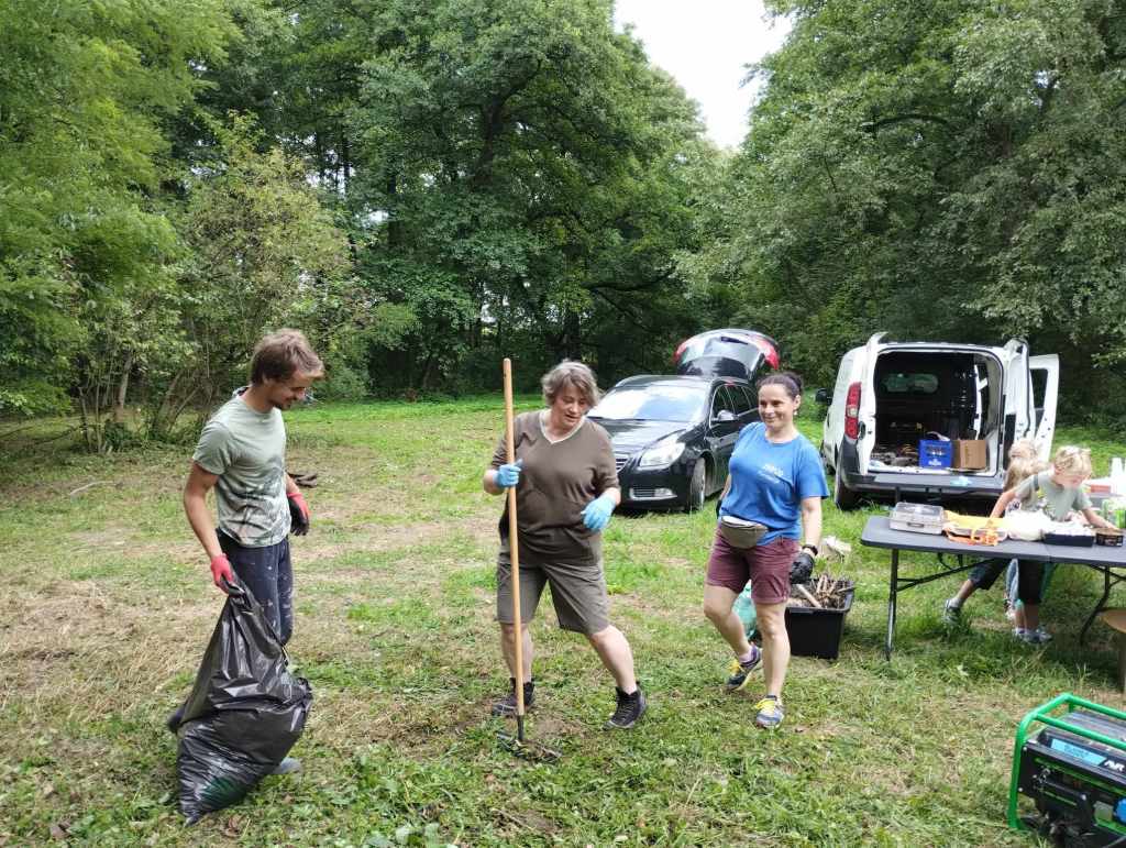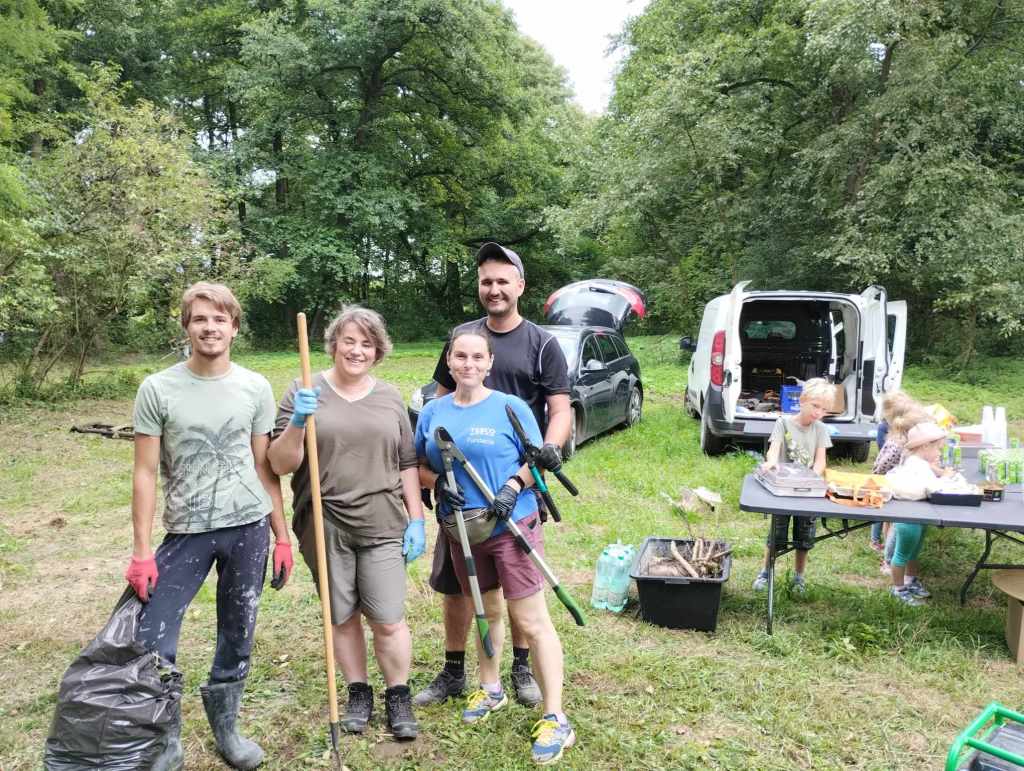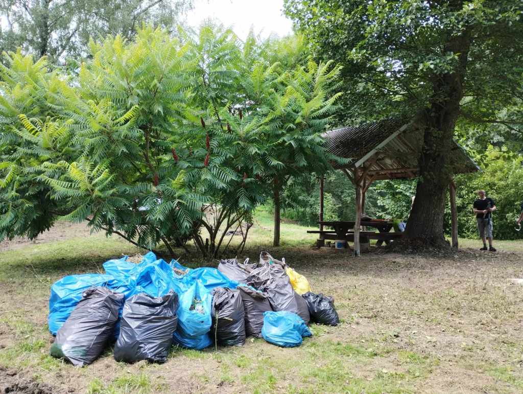 Na Rzekach stawili się ludzie, dla których to miejsce jest ważne, którym brakuje tego, że w Rudawie i w Pisarach nie ma gdzie iść na spacer, którzy chcą, żeby to miejsce znów żyło i którzy nie boją się ciężkiej fizycznej pracy w gronie takich samych zapaleńców. Na miejscu do dyspozycji mieliśmy: sekatory, grabie, piłę łańcuchową i kosiarkę spalinową. Oprócz tego rękawiczki robocze i mnóstwo worków na śmieci. I zapał! Każdy pracował na miarę swoich sił i możliwości – w ruch poszły sekatory i grabie; przycinaliśmy, grabiliśmy, wynosiliśmy śmieci, usuwaliśmy pokrzywy, a najmłodsze dzieci zbierały śmieci do worków. Wpadła do nas wójt Dorota Kęsek i na równi z nami zabrała się do pracy. Były ciasta, ciasteczka, lemoniada, soki, były upominki dla dzieci.