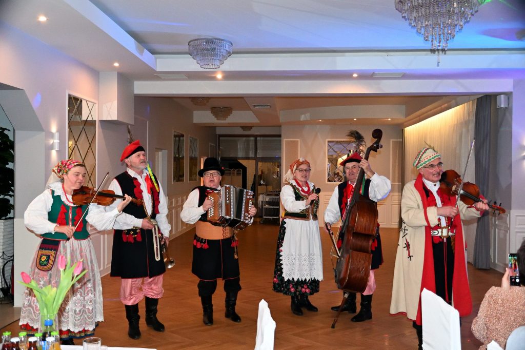 Duże emocje wśród gości wywołała pani Małgorzata Krzysica, która zaśpiewała pieśń Leonarda Cohena „Hallelujah” ze słowami swojego autorstwa. Piękne to było i poruszające, bo ta pieśń jest poruszająca w bodaj każdym wykonaniu. Pani Małgorzata dała też krótki recital standardów w swoim wykonaniu, do których wszyscy tańczyliśmy. Mnie najbardziej ujęło wykonanie piosenki Ireny Jarockiej „Kawiarenki”. Taniec z własnym mężem to jest przyjemność sama w sobie, a do tej piosenki, jak i licznych walczyków i polek, mieliśmy szansę poszaleć na parkiecie. Poszaleć w dosłownym tego słowa znaczeniu.