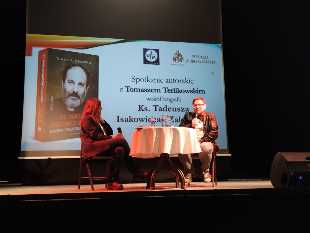 Wczoraj (9 marca 2025 r.) miałam okazję wziąć udział w spotkaniu autorskim z Tomaszem Terlikowskim, autorem biografii księdza Tadeusza Isakowicza-Zaleskiego. Spotkanie zorganizowała Fundacja im. Brata Alberta w Radwanowicach, na której konto autor przekaże zyski ze sprzedaży książki. To było bardzo ciekawe spotkanie i bardzo ciekawa rozmowa.